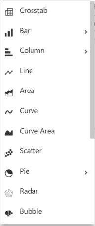 view type selection is displayed on the toolbar of the widget. If you click the icon a selection box appears where you can select a different view type. For example,